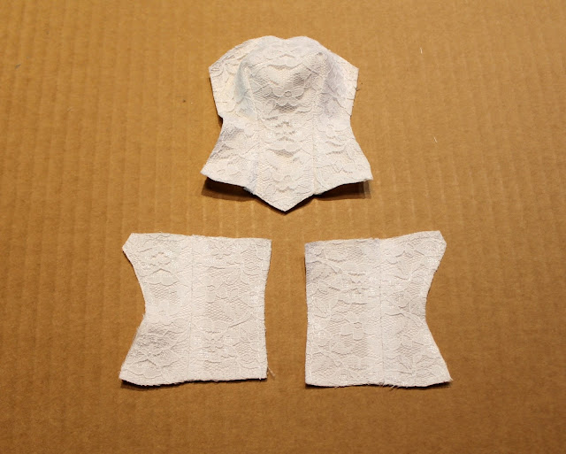 Pin and stitch the lace trim to the top and bottom of the bustier.