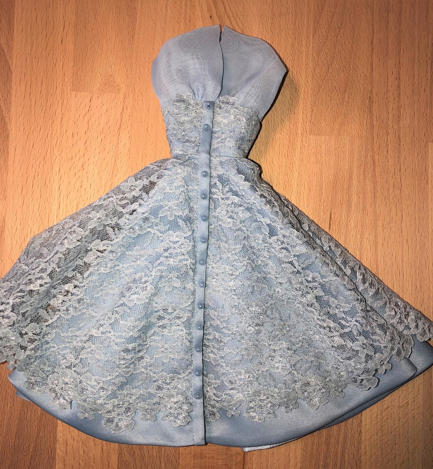 for a day or so to allow the skirt to “hang-out”. Pin up the lace skirt to get it out of the