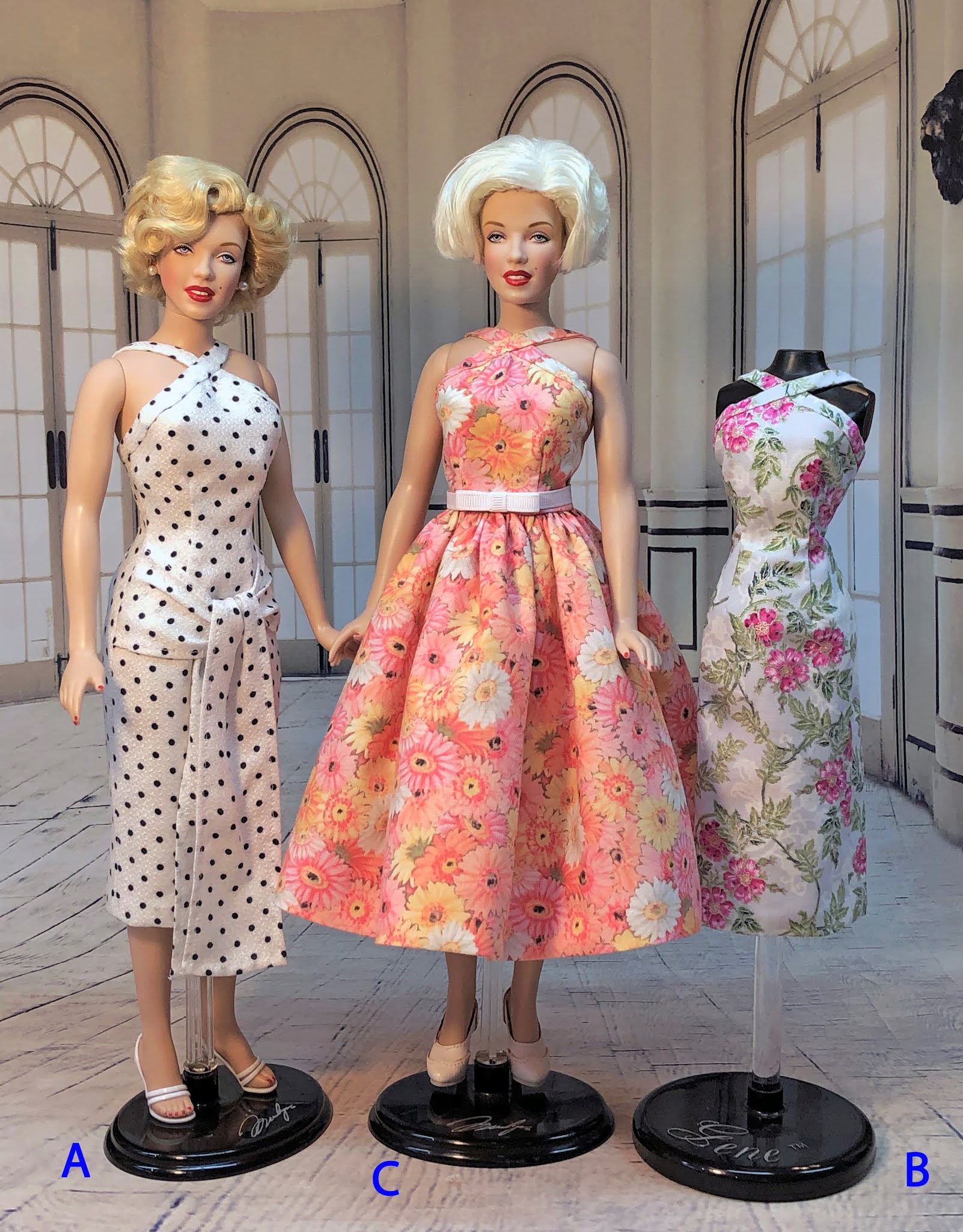 This pattern is sized to fit Franklin Mint's 16" Marilyn Monroe doll.