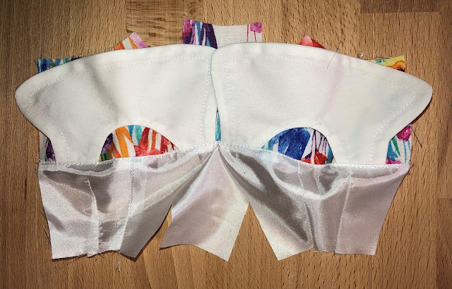 Turn the collars right side out, and press flat. I found stitching and pressing the collars in two steps made it easier to press them and get the right shape. Baste the ends of the collars together and clip the curves. Top-stitch the collars if desired.